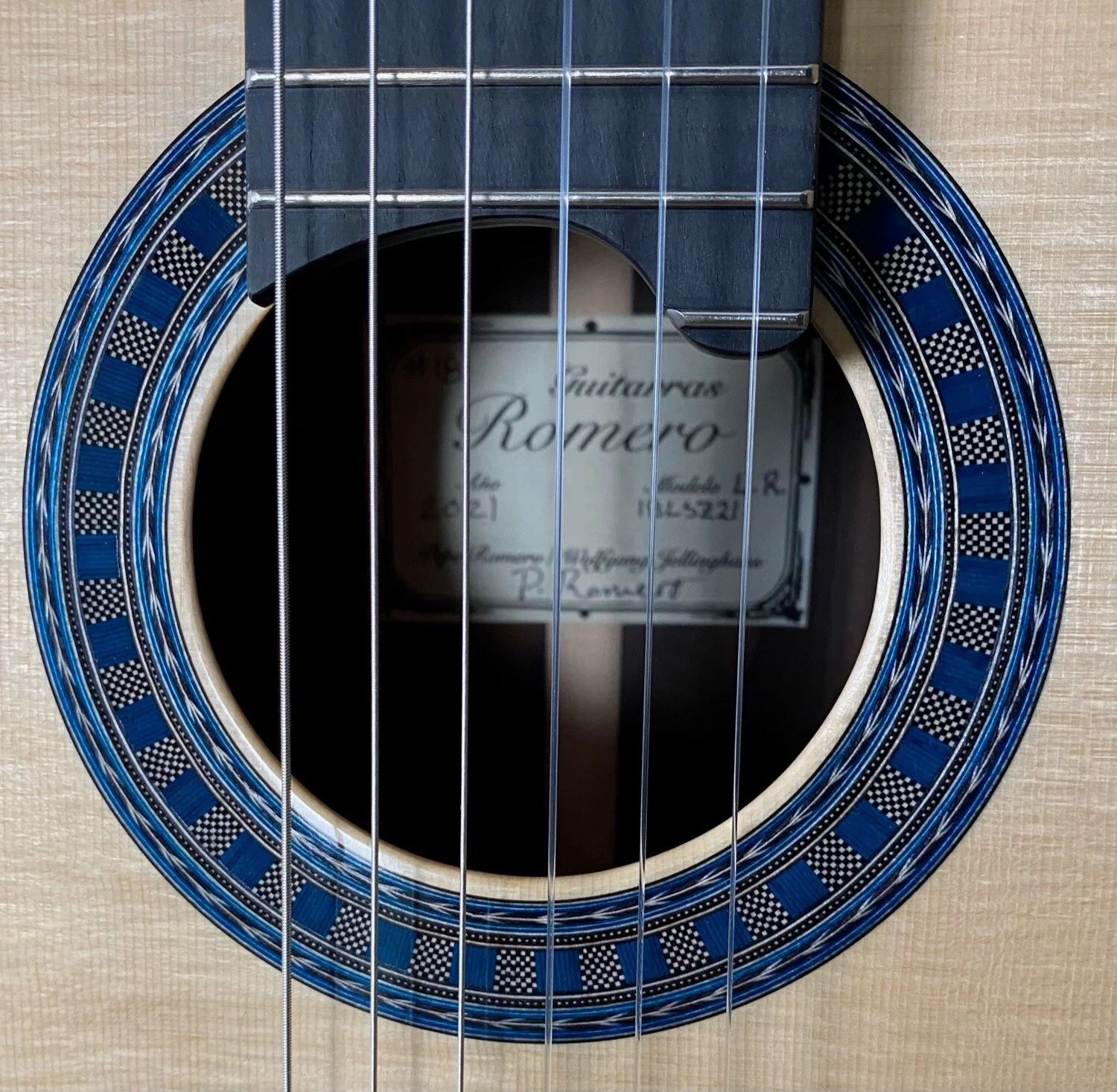 All Guitarras Romero come standard with Pepe Romero Strings Set PEPESR: Classical Guitar Clear Nylon Trebles - Hard Tension.